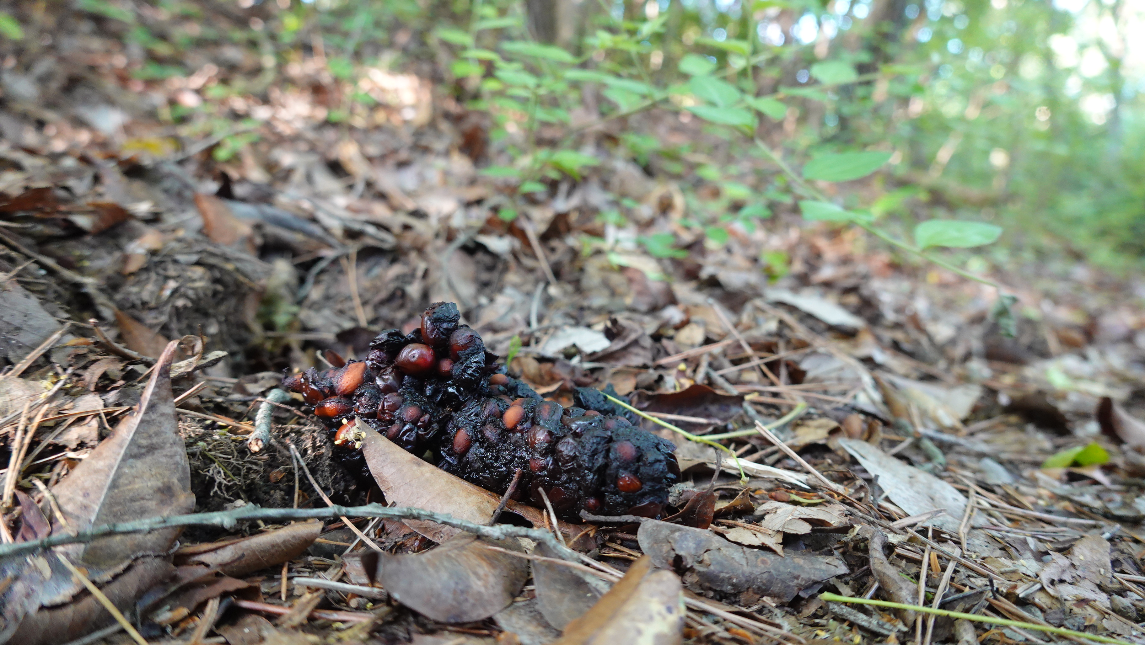 Ruszyłam jak zwykle dość wcześnie, po 6 rano. Na liściach były jeszcze krople po deszczu. A na ścieżce niespodzianka: odchody niedźwiedzia. Niedźwiedzi jest w Japonii tak dużo, że rzeczywiście są wszędzie, nawet w pobliżu takich dużych miast. Był to dowód na to, że miasta stykają się bezpośrednio z dzikimi górami, które są one naprawdę dzikie.