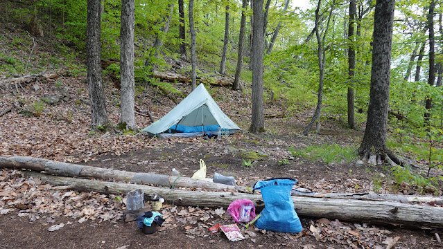 Główną przyczyną, dla której NET jest bardzo rzadko odwiedzany przez wędrowców jest problem z biwakowaniem na dziko. Żaden thru-hiker nie ma ochoty wieczorem jechać taksówką do hotelu - a takie jest oficjalne zalecenie, ponieważ spora część szlaku biegnie przez tereny prywatne i lasy stanowe, w których nie wolno biwakować poza miejscami wyznaczonymi. Miejsc wyznaczonych jest bardzo mało. Zaplanowałam swoją wędrówkę bardzo dokładnie, zupełnie inaczej niż zazwyczaj, właśnie z tego powodu. Chciałam biwakować w wyznaczonych miejscach zawsze kiedy było to możliwe, a tam gdzie nie było nielegalnie biwakowałam na dziko. Mój kolega mieszkający w okolicy powiedział, że zawsze tak robi i nie powinnam spodziewać się problemów. Po prostu tak jak zawsze to robię, znalazłam sobie spokojne, schowane przed ludzkim wzrokiem miejsce i rozbiłam namiot po 18. Z powodu jet lagu potwornie chciało mi się spać. Ale byłam taka szczęśliwa. Moja pierwsza noc w amerykańskim lesie po tylu latach.