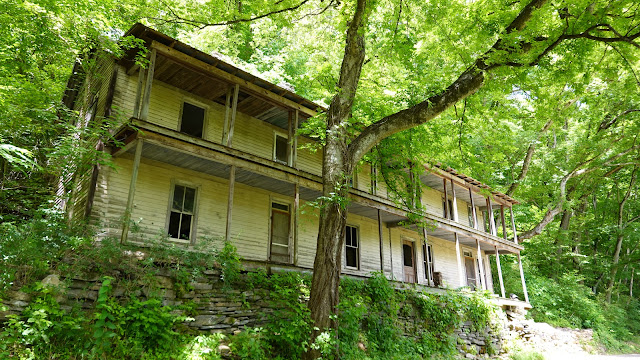 Spływy Rzeką Hiawassee są bardzo popularne. Rzeka była teraz wezbrana po deszczach i wiele osób żeglowało pontonami i kajakami. Szlak zmierzał do mostu, mijając historyczne budynki. Po drugiej stronie też był jakiś bardzo stary murszejący hotel.
